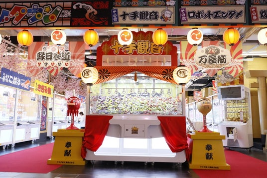 この度、大阪を代表する観光スポット「道頓堀」、さらには道頓堀のアイコンともいえる「くいだおれビル」に誕生する「あそびタウン」は、『日本の和』をテーマに、様々なあそびを散りばめ、あそび心ゆたかに表現している他、ぜひ体験していただきたい『三大推し』は、クレーンゲーム初心者の方にも優しい「爆獲横丁(ばくとれよこちょう)」、あそびタウンオリジナルの10本アームのクレーンゲーム「十手観音(じゅっしゅかんのん)」そして15体の拍手ロボットが織りなす「ロボットエンターテインメント」です!