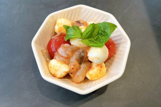 まさかの食材とタコキムチを合わせることで、ビックリなソースが出来ました。チーズとトマトにかけてキムチとは思えない逸品に