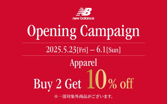 myNB会員の入会はこちら https://shop.newbalance.jp/login 店内アパレル商品2点以上ご購入で10%OFFとなるキャンペーンを開催いたします。