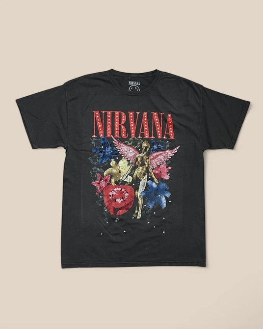 ジャパン発のカスタマイズブランド「プリンチペプリヴェ」とLA発のアーティスト集団「Couture」がコラボレーション。1990年代前半のグランジブームを牽引した伝説的ロックバンド「NIRVANA(ニルヴァーナ)」のバンドTシャツをカスタマイズしたプロダクトが発売。