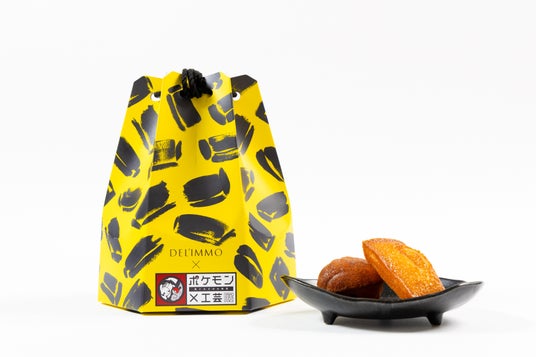 「ポケモン×工芸展」コラボ商品。ピカチュウをイメージした黄色いピクニックバッグに焼きたてのフィナンシェが5つ入ったアソートセット。