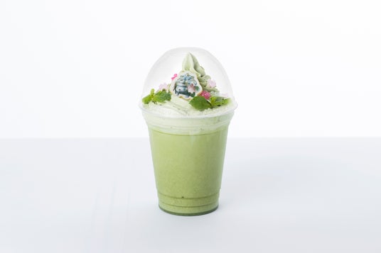植葉香澄の作品《羊歯唐草文シェイミ》を抹茶ホイップで表現し、花のイメージからピンクのコンペイトウを飾りました。