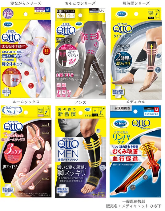 メディキュットは、2025年より脚ケアの重要性をより多くのみなさまに感じていただき、自分の脚と向き合う機会を届けるため「メディキュットfor ALL」~毎日すっきりしたい、すべての脚へ。いつでも履くだけ、ながらケア。~をブランドメッセージとして設定しました。脚の悩みはひとり一人違うので、年齢も性別も関係なく、使いたいシーンや脚の悩みに合わせて選べます。いつでもどこでも履くだけで、毎日すっきりを叶えます。