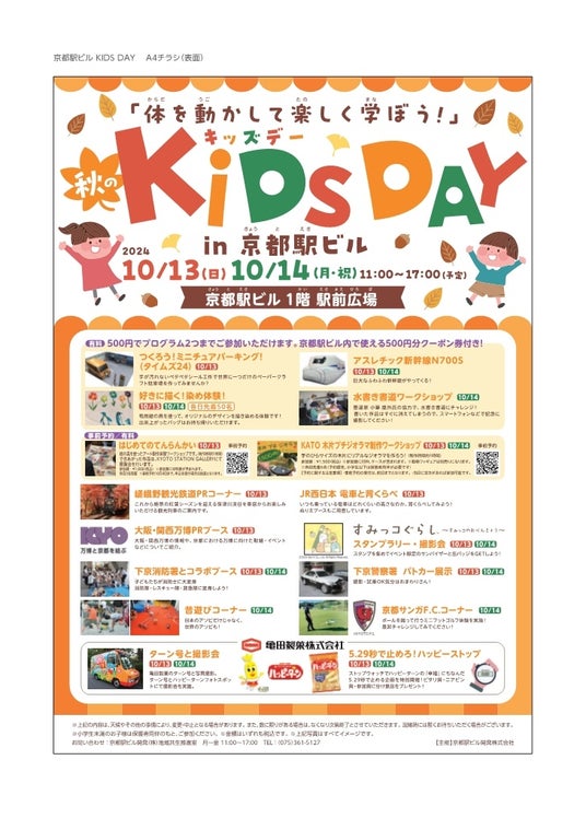 「体を動かして楽しく学ぼう!」をテーマにお子様やファミリーで楽しめるイベント『京都駅ビル 秋のKIDS DAY』開催!