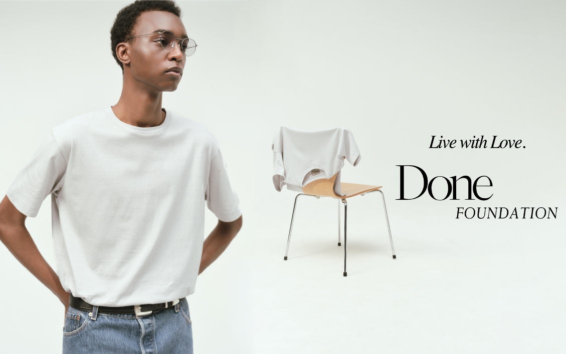 Done Foundation は、「古着スタイルの最適解を、整える」という思想のもと、古着と組み合わせたときに自然とバランスが整い、現代的かつクリーンに着られる状態をつくるためのベースアイテムを提案します。