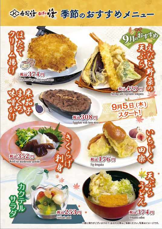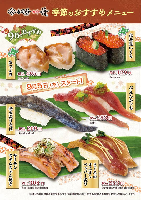 「回し寿司活/寿司活」9月5日(木)スタート!季節のおすすめメニュー