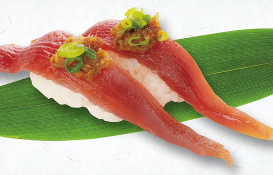 まぐろにオニオンペッパーをのせ、香ばしく炙ったピリッとしたアクセントが楽しめます。