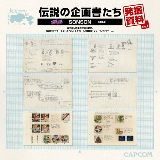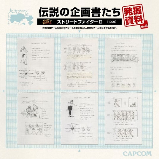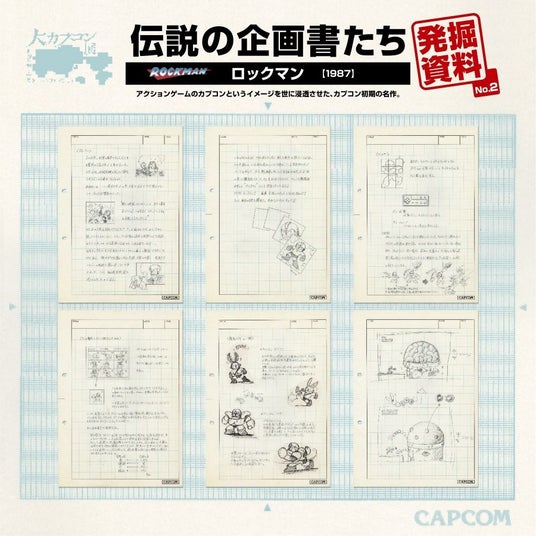 「大カプコン展」で展示されている数々のポスターや過去のタイトルの企画書、パッケージを出力して展示。企画書やパッケージのなかには「大カプコン展」で展示されていないものもございます。