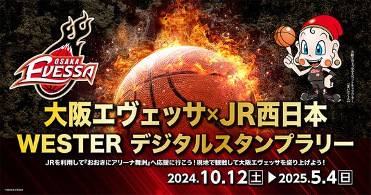 このたび、大阪エヴェッサを運営するヒューマンプラニング株式会社(本社 大阪市中央区 代表取締役 磯村 英孝、以下「大阪エヴェッサ」)は、西日本旅客鉄道株式会社(以下、JR西日本)、株式会社ギックス(以下、ギックス)と移動生活ナビアプリ「WESTER」を活用したデジタルスタンプラリー「大阪エヴェッサ×JR西日本 WESTERデジタルスタンプラリー」を実施します。