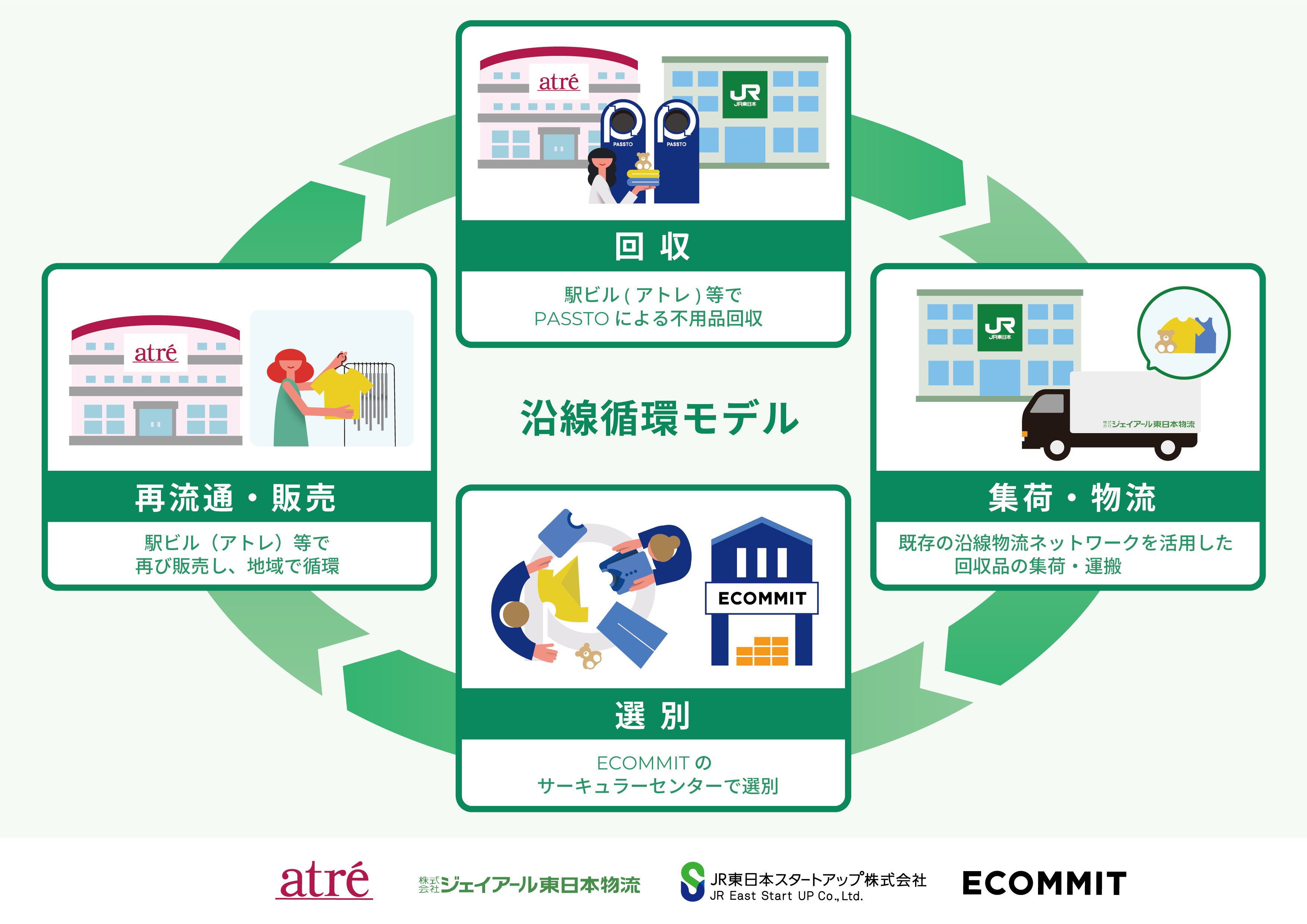 ■将来的に 本実証はJR沿線という生活圏の中で実施される点にも特徴があります。回収から再流通までを比較的短い距離の中で完結させることで、「沿線単位で循環が回る小さな循環圏」の形成が可能になるのではないかという仮説のもと検証を行います。今回は常磐線エリアでの実施を予定しており、今後は他沿線への展開も視野に入れています。