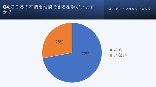 Q1で「とてもある」「ややある」と答えた新社会人に、「Q4.こころの不調を相談できる相手がいますか?」とアンケートをとりました。
