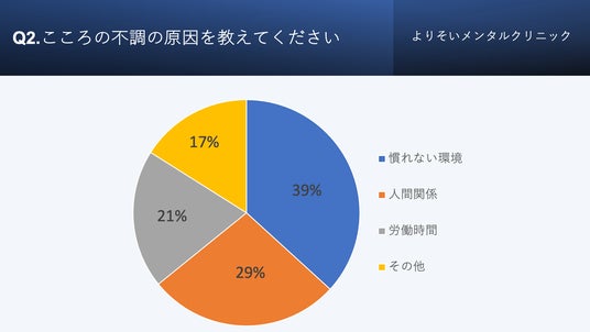 また、新社会人のこころの不調の原因として「慣れない環境」や「人間関係」に悩まれる方が多いことがわかりました。