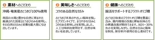 沖縄・奄美産さとうきび100%使用コクがあって美味しい。腸活サポート!