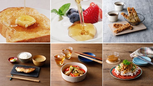 使いやすい液体タイプなので、あらゆるお食事、デザートに幅広くお使いいただけます。トーストやヨーグルト、お飲み物、デザート用のシロップとしても、手軽。煮物などのお料理にカロリーを抑えながら、コクのあるまろやかな甘さを加えたいときに。砂糖と同じように毎日の食事にお使いいただけます。