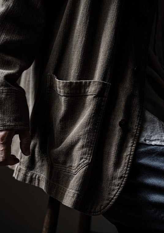 CONFECTが魅せられる生地の質感は、人工的に整えられた同一的な質感ではなく、自然が生み出す「ありのまま」が活かされた、よく見るとてんでばらばらな、不均一な質感です。私たちが天然素材、製品染めにこだわるのも、この「生地の質感」をより一層惹き出し、その上で服にしていきたいという考えあるからです。さらに不均一な質感は、着用者がどのように着て暮らすのかによって変化し、私たちが「味(=あじ)」として讃えるように、育っていく。そんな余白を持っています。2024年9月後半。「生地の質感」と「染め」に拘り、ワーク・ハンティングを由来とした新素材・新型のウェア2型をご用意しました。