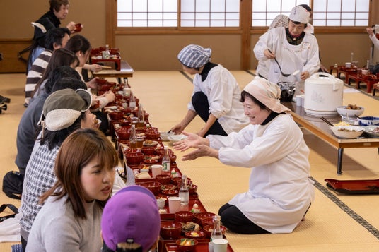 雪景色を眺めながら、地元のお母さんたちがふるまう郷土料理を味わえる特別プランもご用意。雪道運転が不安な方には、オフィシャルツアーもおすすめです。