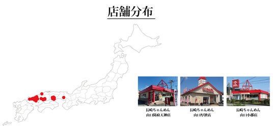 山口県17店舗 広島県5店舗 島根県1店舗 岡山県8店舗 兵庫県1店舗