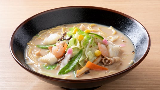 ーメン】の良い部分を活かした特徴にあります。ちゃんぽん特有の具だくさんの食材と白湯スープに