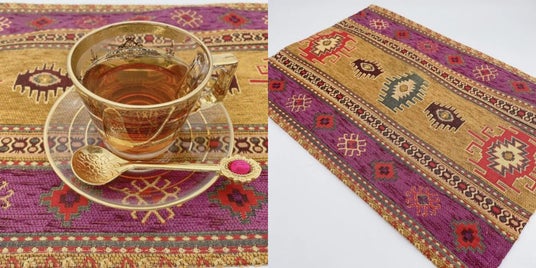 シェニール織りの上質なランチマットです。光沢のあるシェニール糸で織られたキリム柄が、食卓を華やかに彩ります。いつもの食事やティータイムに使うランチマットとしても◎。トルコ製のカップ&ソーサーにもよく合います。インテリアマットにもぴったりな美しいデザインは、敷くだけでお部屋の雰囲気を格上げしてくれそうです。