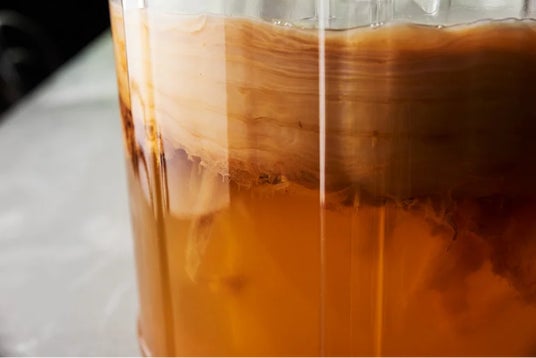 KOMBUCHA(コンブチャ)は、お茶に糖類を加え酢酸菌と酵母から生まれた『SCOBY(スコビー)』を入れて発酵させた、植物由来の微炭酸飲料「発酵スパークリングティー」です。