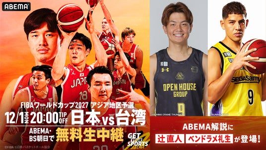 新しい未来のテレビ「ABEMA(アベマ)」は、2025年12月1日(月)に無料生中継する『男子バスケットボールFIBAワールドカップ予選 日本×台湾』において、Bリーグを代表するトッププレーヤーの辻直人選手、ベンドラメ礼生選手を「ABEMA」オリジナル解説として迎えることをお知らせいたします。