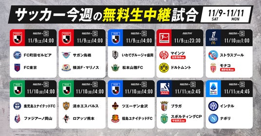 ■「ABEMA」、「ABEMA de DAZN」 無料放送スケジュール(11/9-11/11)※