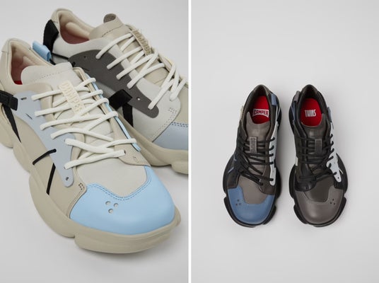 「靴は右足と左足のデザインが同じでなくてはならない」という常識にとらわれることなく、右足と左足をそれぞれ違うデザインにし、両足が揃うことでデザインとして完成させるチャレンジから1988年にスタート。それ以来、革新的なデザインにチャレンジしつづけ、シーズン毎に新しい素材やデザインで登場し続けています。TWINSの各ペアはミスマッチになるように設計し、ラインに非対称性と個性をもたらしています。カンペールの創造性、革新性、型にはまらない哲学の究極の表現を体現しています。