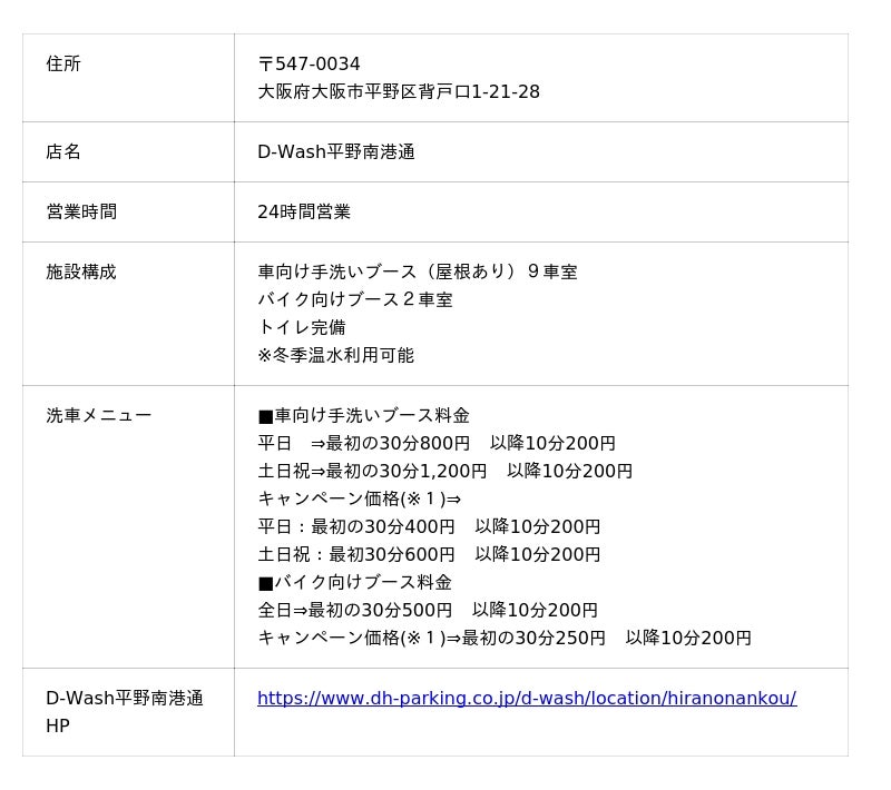 ■「D-Wash平野南港通」について