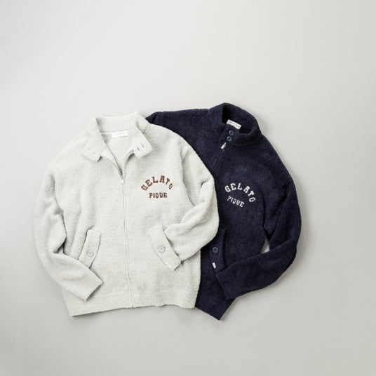 そのアイビールックの代表的なアイテムを、ジェラート ピケ オムらしいモコモコ素材でルームウェアに落とし込みました。