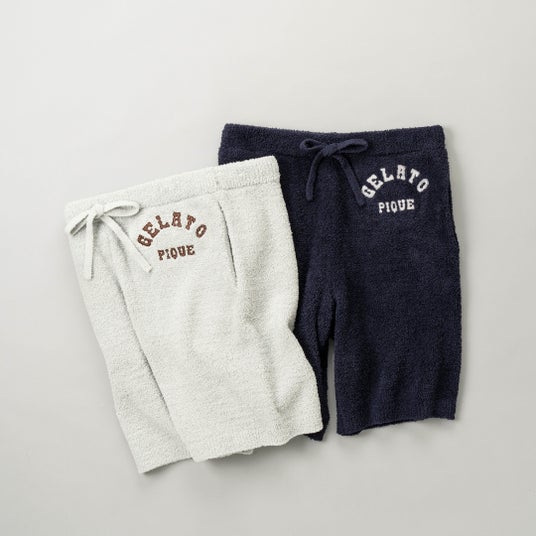 トップスのデザインと同じカレッジ風のロゴ刺繍を左腰に配したハーフパンツです。