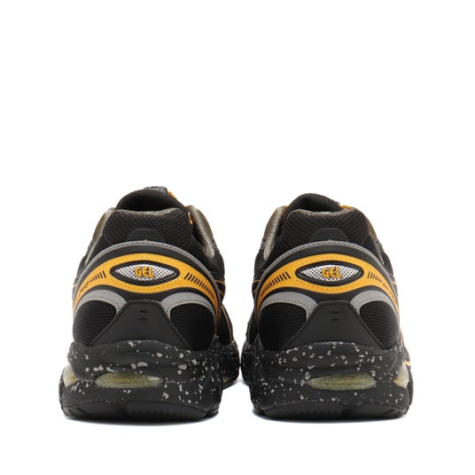 ブラックを基調としたアッパーに、GRIP SWANYの代名詞「スワニーイエロー」をアシックスストライプ、GT-2160らしいつま先からヒールにかけての曲線に落とし込んだ。シューレースにはアウトドアギアを彷彿とさせるドローコードを使用し容易な着脱を追求。ミッドソール部分のスプラッター、ヒール部の曲線にはリフレクターを搭載し、暗闇でもその存在感を示す。インナーソールには前回の仕様を用いたダックカモパターンを配した。