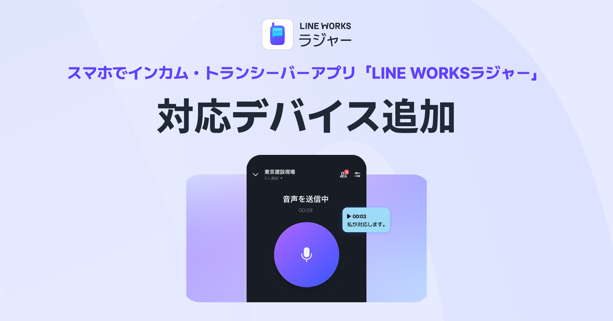 今後も「LINE WORKSラジャー」は、ヘッドセットやスピーカーマイク、スマートフォン、ウェアラブルデバイスなどとの連携を拡充し、様々な現場のコミュニケーションニーズに対応してまいります。