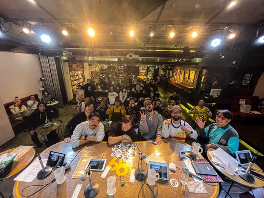 昨年に引き続き、今回も配信プラットフォーム「ZAIKO」でのライブ配信とのハイブリッド開催となった今年の「リアル井戸端会議」では、通常の配信でもおなじみの岩崎太整(作曲家)、サンキュータツオ(芸人/大学講師)、上鈴木兄弟(双子のラッパー)、大西玲央(NBA Japanシニアエディター)がNBAに関する様々なトピックについて軽妙なトークを繰り広げた。イベントの途中にはB.LEAGUEで実況も務める永田実、ワシントン・ウィザーズの「公認スーパーファン」でグラフィックデザイナーのMQも急遽登壇しNBAファンたちと交流した。