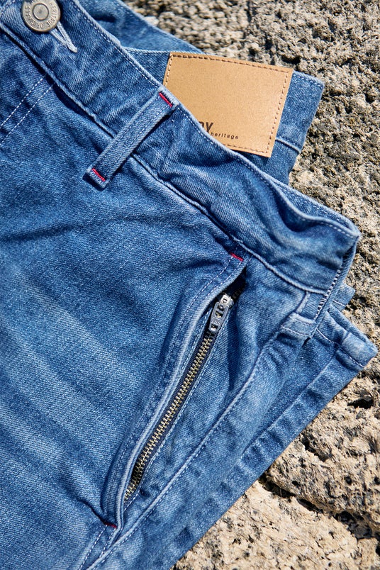 RIKU (カラー名 -MINATO BLUE- /組成 -綿90%、ポリウレタン10% -/サイズ展開-29,31,33-)¥33,000 (税込)