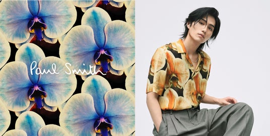 販売商品: シーズンのテーマである「フォトグラフィー」を意識し、ポール・スミス氏自身が撮影した蘭の花(ジャパニーズオーキッド)をあしらったTシャツやトートバッグなど、全8型の限定商品を「Rakuten Fashion」にて販売します。