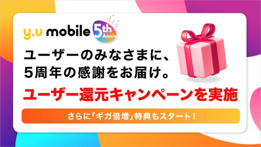 「y.u mobile」 サービス5周年を記念しユーザー還元キャンペーン&ギガ倍増特典企画を実施