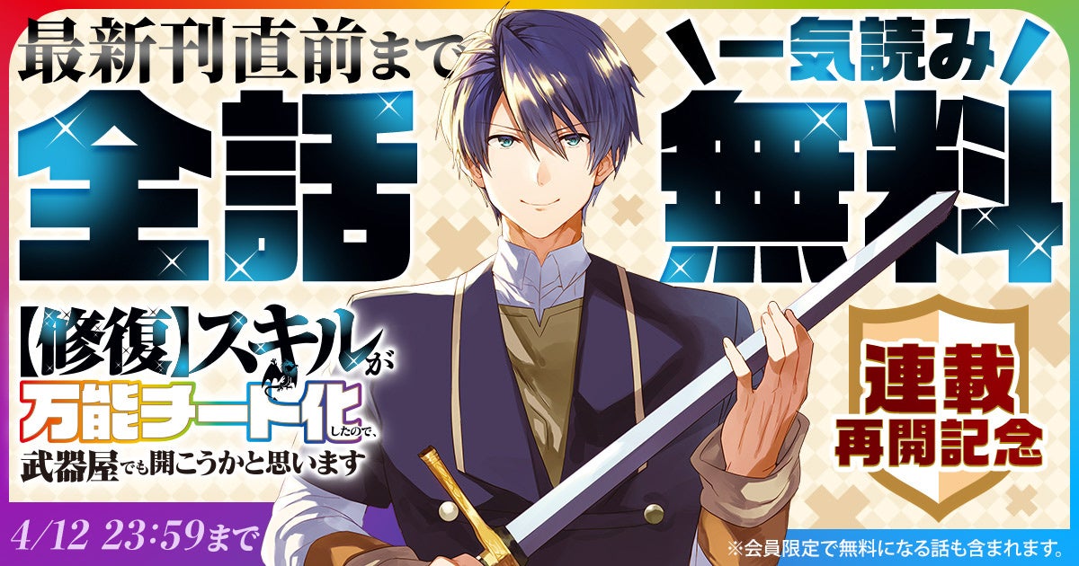 『【修復】スキルが万能チート化したので、武器屋でも開こうかと思います』が48時間限定で最新刊直前まで一気読みできる!!「ヤングアニマルWeb」にて全話無料キャンペーン実施!!