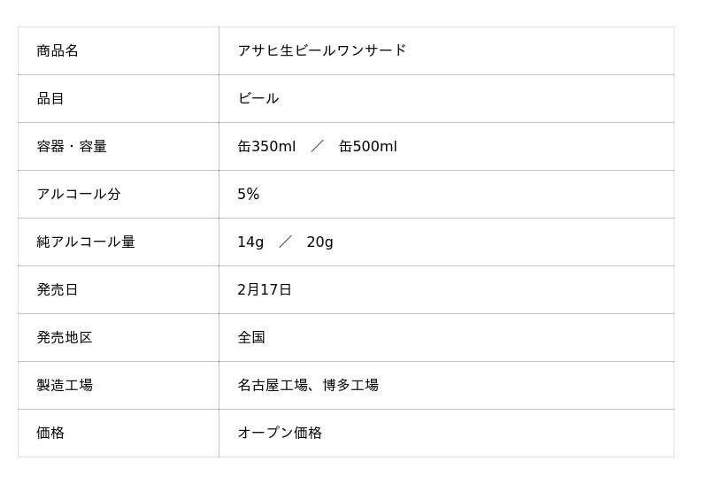 『アサヒ生ビールワンサード』2月17日数量限定発売