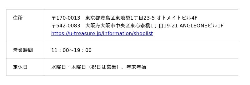 お客様のお問い合わせ窓口(ユートレジャーオンラインショップ)◆お問い合わせフォーム>> https://u-treasure.jp/contact