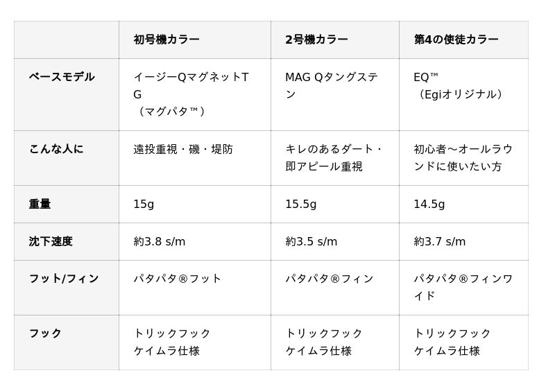 第1弾エギ(3.5号)に続く今回は、より汎用性の高い3号サイズでの展開。