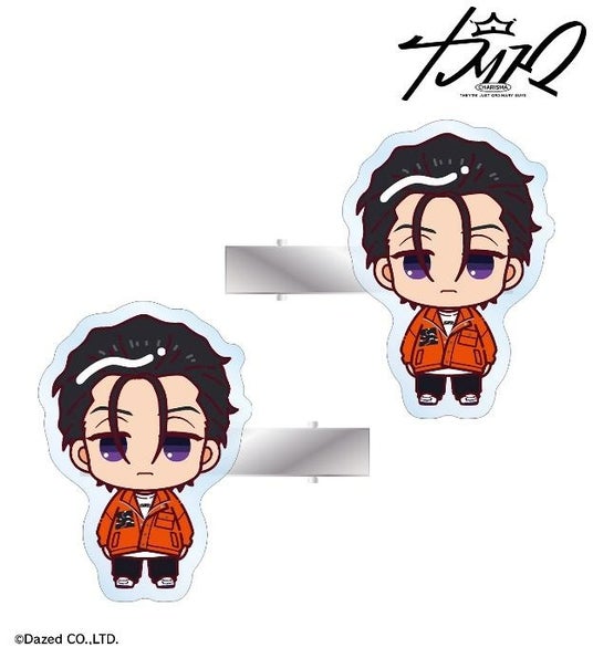 伊藤 ふみや、草薙 理解、本橋 依央利、猿川 慧、湊 大瀬、テラ、天堂 天彦がちょこんと立っているちびキャラを新たに描き起こし、アクリルスタンドに仕上げました。