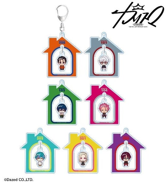 伊藤 ふみや、草薙 理解、本橋 依央利、猿川 慧、湊 大瀬、テラ、天堂 天彦がちょこんと立っているちびキャラを新たに描き起こし、ゆらゆら動くアクリルキーホルダーに仕上げました。