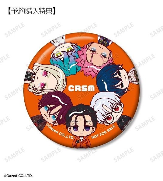 伊藤 ふみや、草薙 理解、本橋 依央利、猿川 慧、湊 大瀬、テラ、天堂 天彦がちょこんと立っているちびキャラを新たに描き起こし、缶バッジに仕上げました。