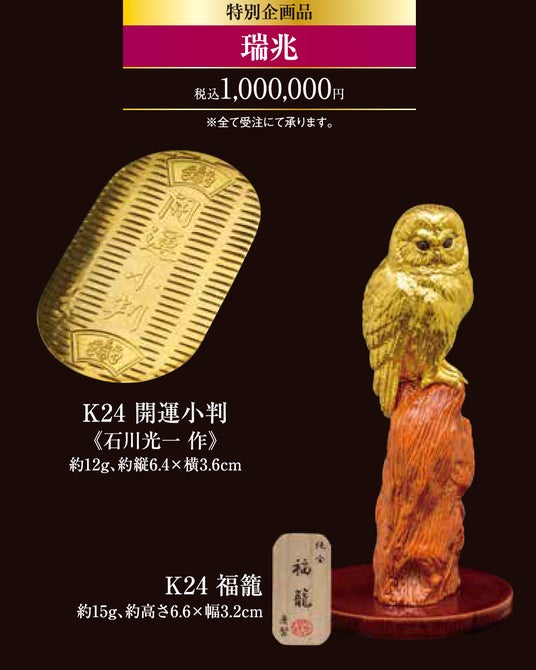 人気の仏具から縁起物まで金製品が一堂に会する展示販売会で、人間国宝の作品など日本の伝統