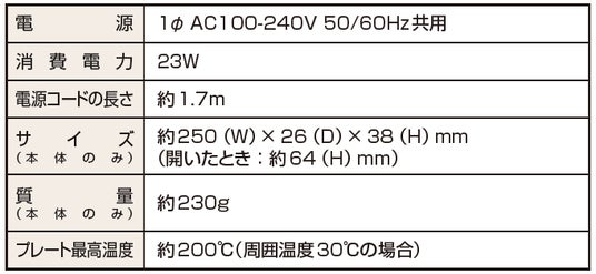 ・2段階の温度調節(約160/200℃)。誤操作しにくい内側操作部。