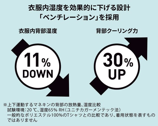 これにより、衣服内湿度を効果的に抑制し、背部のクーリング力が30%向上(※)しました。