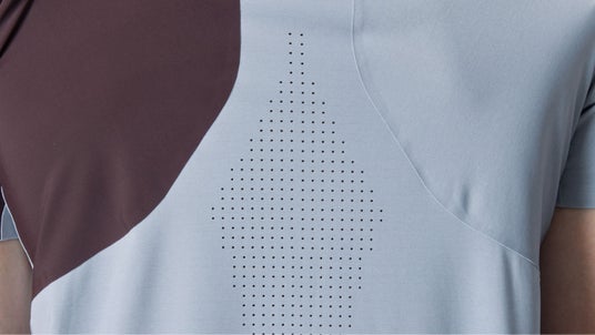 独自の理論のデータをもとに素材の配置・構造・パターンを設計し、首元と背中にベンチレーション機能として通気性を高めるためレーザー加工による小さい穴を複数開けています。機能に必要な構造だけを残すことで余計な抵抗を排除し、ゴルフの動きに自然に沿う形を生み出しています。