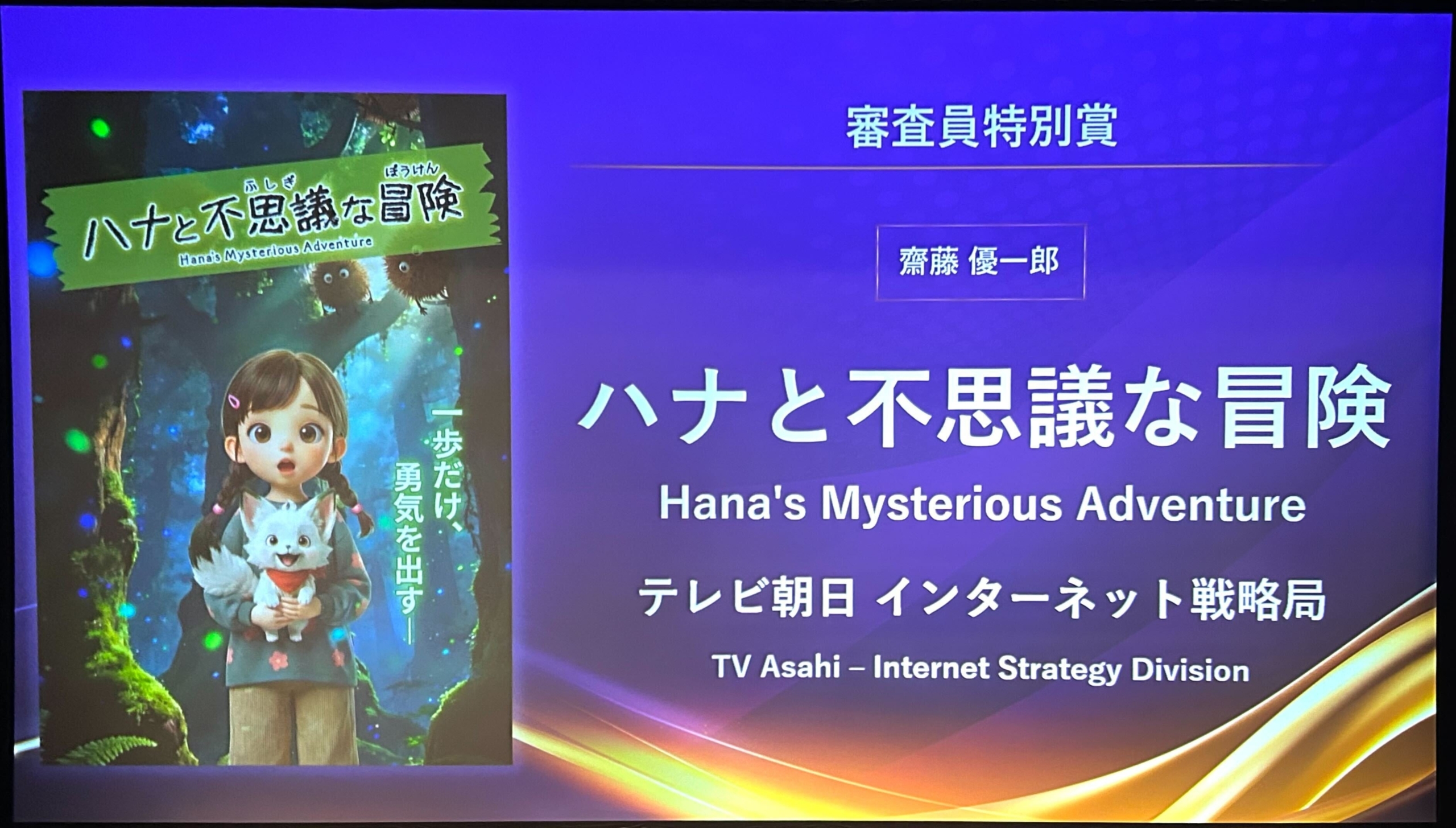 テレビ朝日インターネット戦略局AI推進部がプロデュース、TOKYO EPICが制作を担った短編オリジナルアニメ『ハナと不思議な冒険』が、2026年3月12日(木)、ロームシアター京都で開催をされたAI映画祭「WORLD AI FILM FESTIVAL 2026 in KYOTO」にてスタジオ地図代表取締役プロデューサー齋藤 優一郎様より審査員特別賞を受賞しました。