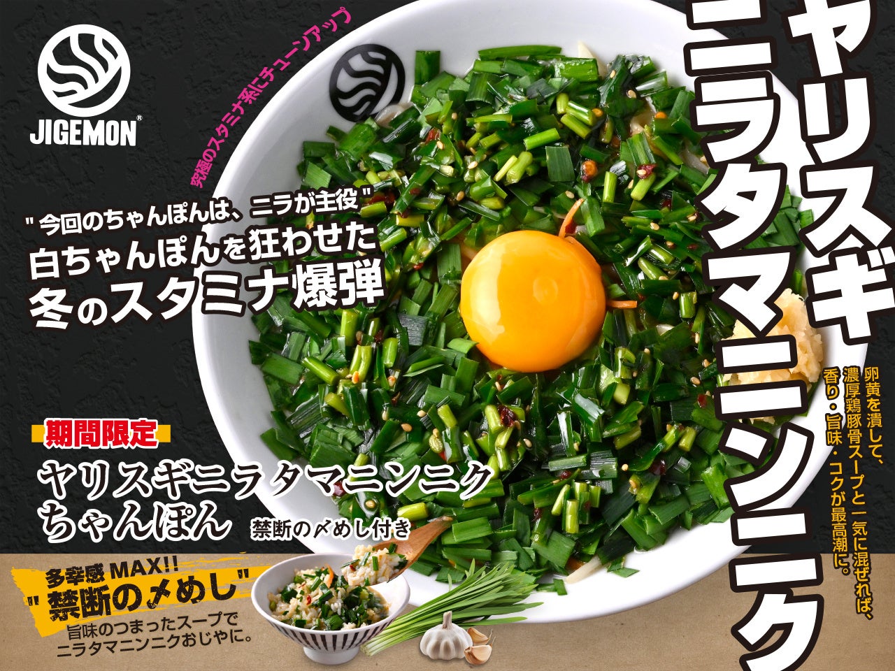 『元祖東京濃厚鶏豚骨 じげもんちゃんぽん』「ヤリスギニラタマニンニクちゃんぽん(禁断の〆めし付き)」2026年1月2日(金)より冬季限定販売