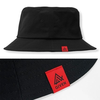 「ギヴン」バンドデザインのオリジナル織りネームタグを施したコットンツイルのバケットハット。